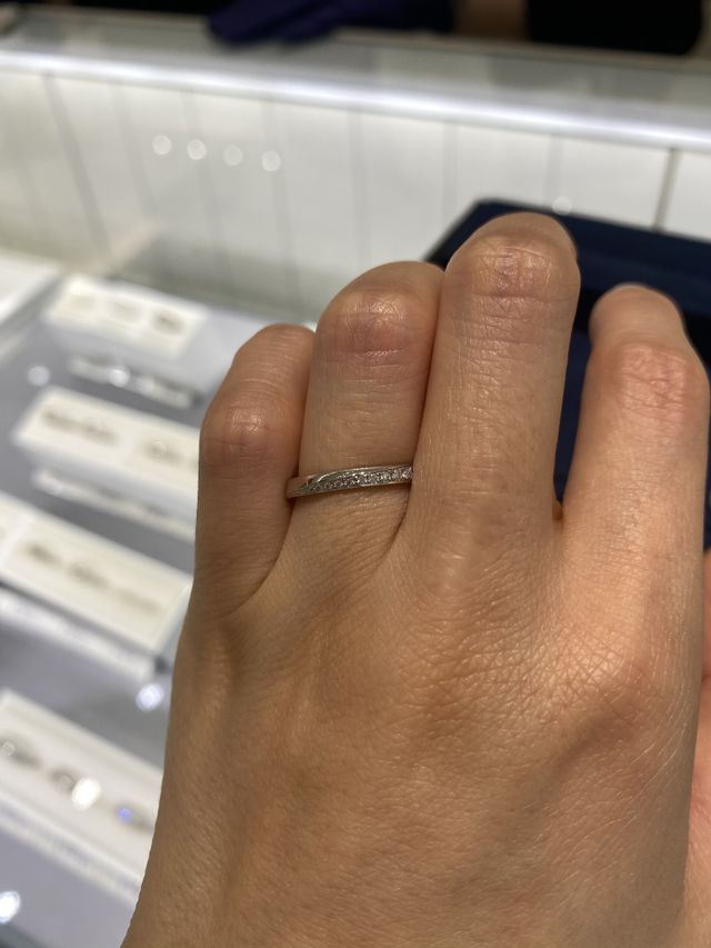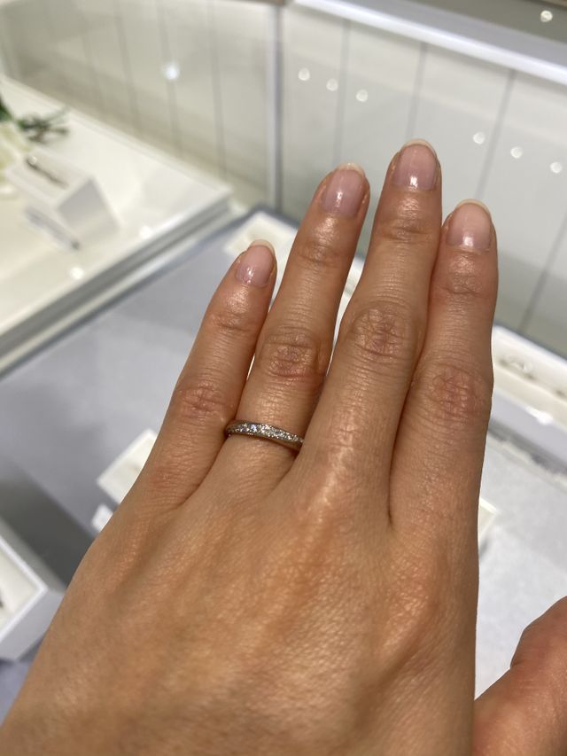 指輪選びの際も、詳しく細かく説明していただき、たくさん試着させていただきました。希望していたデザイン以外にもオススメいただき、デザインの幅が広がりました。アフターケアの説明も丁寧にしていただいたので、長く綺麗に使用していけると思います。