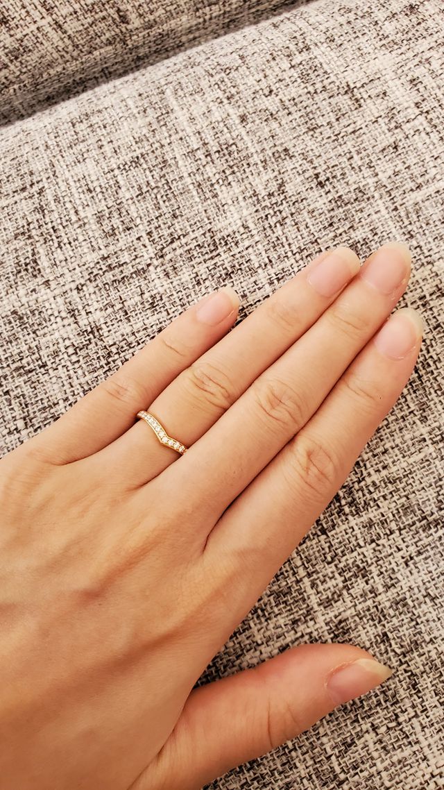 指輪のデザインと価格が決めてでした!とても手が綺麗にみえて気に入っています。おすすめしたいです。キラキラしているのが嬉しいです。ピンクゴールドも手に馴染んでいておすすめできます。裏にストーンもいれました。