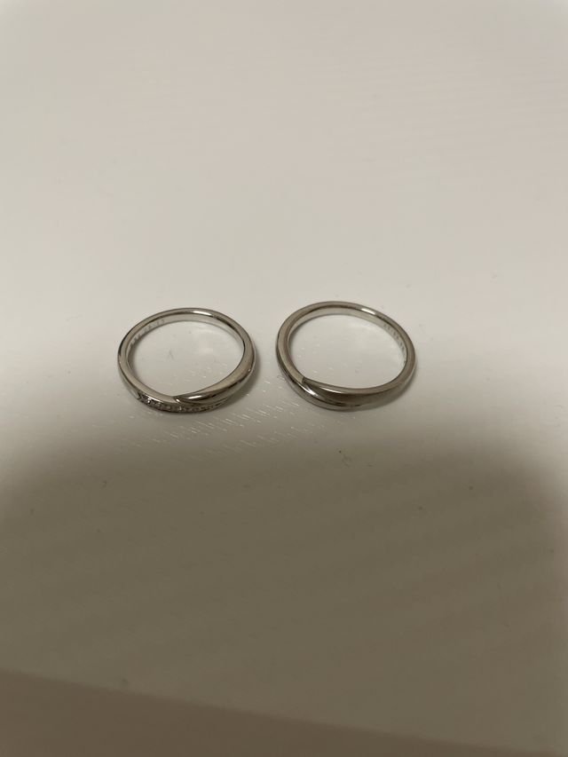 特に男性の方の指輪が艶ありと艶なしが重なっているデザインで良かったです。女性の方だと気になるデザインも指が細見えするデザインだと定員さんがおっしゃっていました。