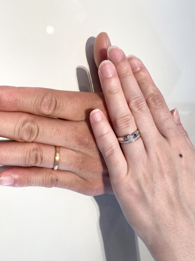 指輪の「裏側に永遠の愛」や、「絆を深める」といった意味があるブルーダイヤが元々入っているのもとても良かったです。