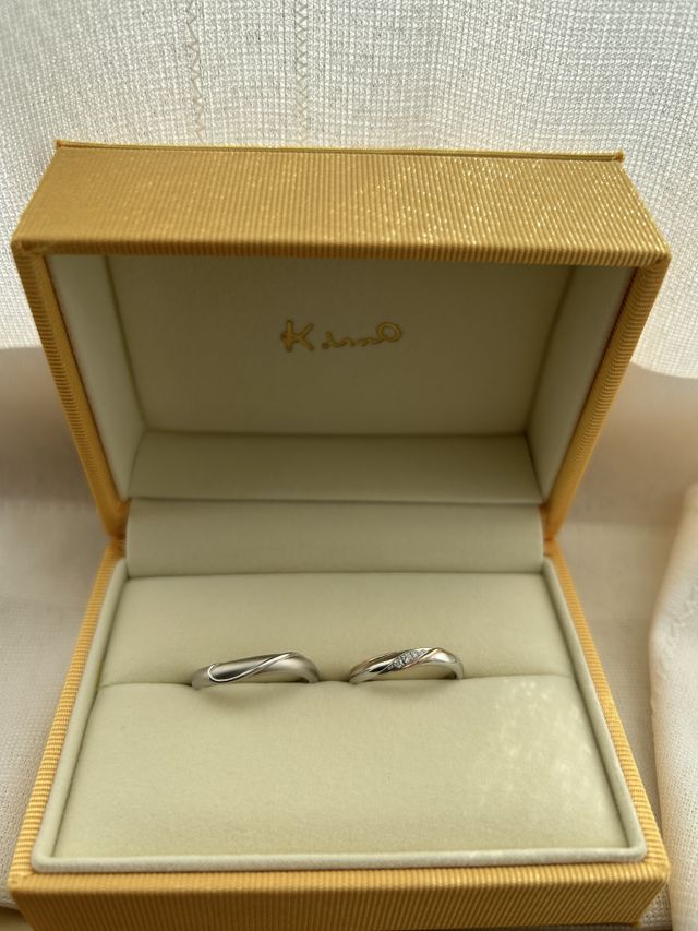 ケイウノの既製品の指輪で気になるデザインが2つあり、どちらにしようか迷っていました。その2つの指輪の特徴を組み合わせたデザインに、2人のイニシャルも組み合わせたデザイン提案してもらい、理想の指輪だと思えたから。