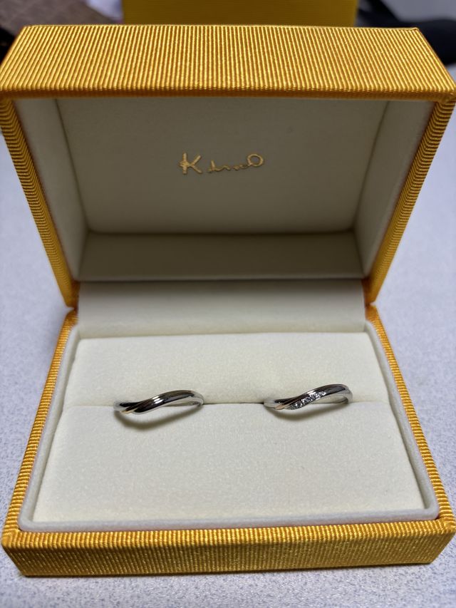 私は手がクリームパンみたいなので、こちらのデザインはV型なので指が普通の指輪より長く見えるのでありがたいてます。ダイヤの数も変えられるし、私のお気に入りです。