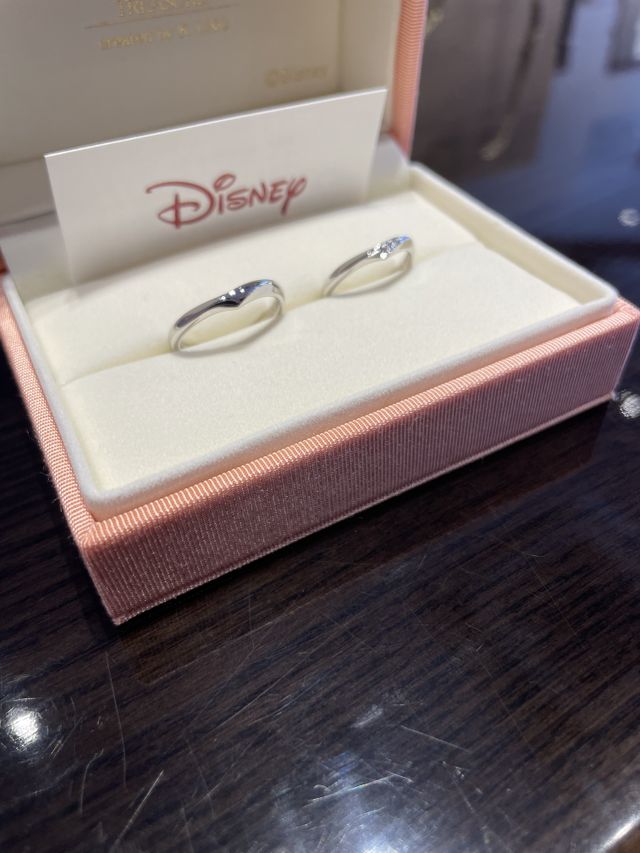 同じケイウノさんのルミナーレと迷いましたがこちらに決めました!プラチナカラー単色でなんにでも合わせやすいのがいいです。内側に好きなディズニーの刻印もいれていただきました!