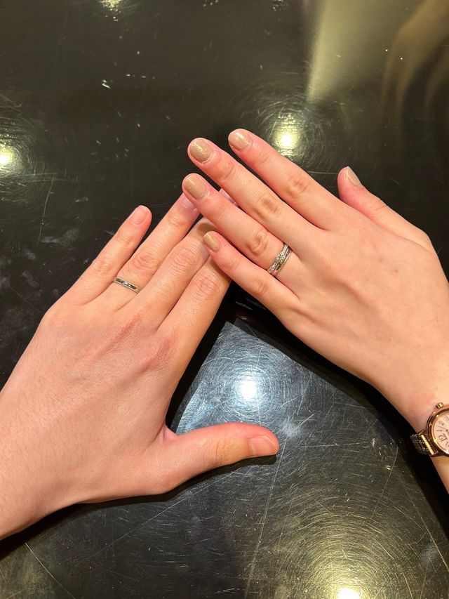 最初から案内してくれる方と、途中からデザイナーさんとで2人で対応していただけます。2人のイニシャルを使った刻印のデザインを描いていただき、とても気に入ったので指輪に刻印しました。自分たちだけの特別感があります。