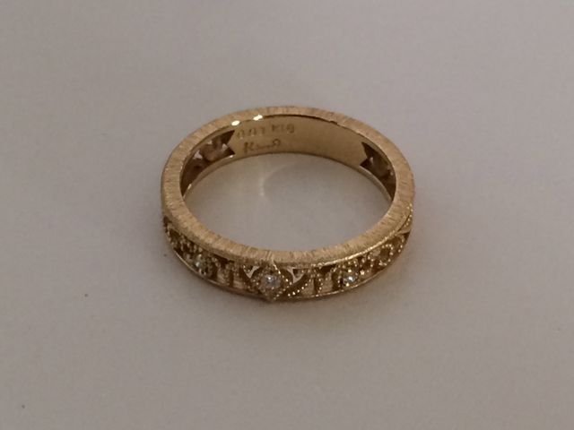 はじめはクラシコの指輪が気に入り検討していおですが、担当の方のすすめで、クラシコを元に自分たちのイニシャルを入れ、よりアンティークに見えるようミル打ち加工を取り入れたデザイン画を、その場でデザイナーさんが書いてくださいました。思い描いていた指輪のデザイン画が購入の決め手になりました。