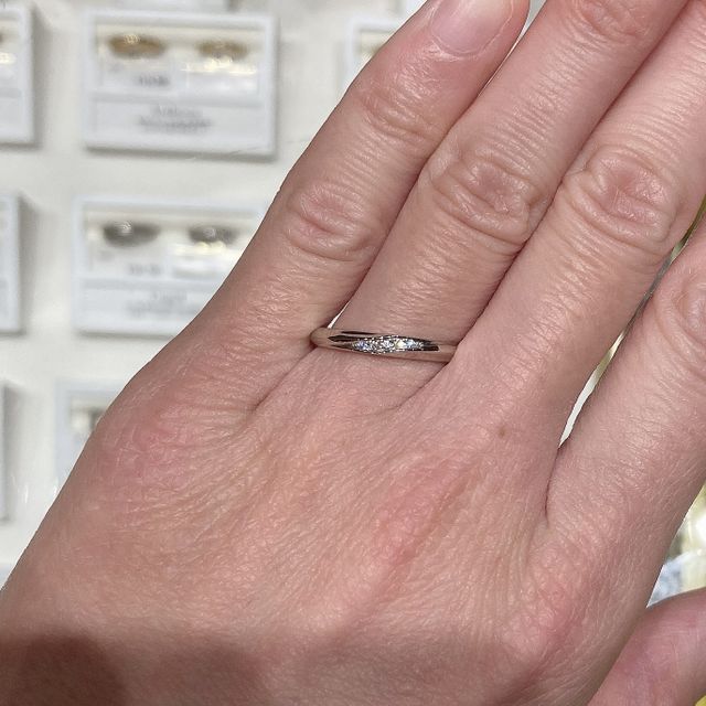 シンプルで控えめなダイヤがとても上品で素敵でした。年齢を重ねても、大人の美しさが手元にあり、指輪自体のつけ心地も本当に良かったです。