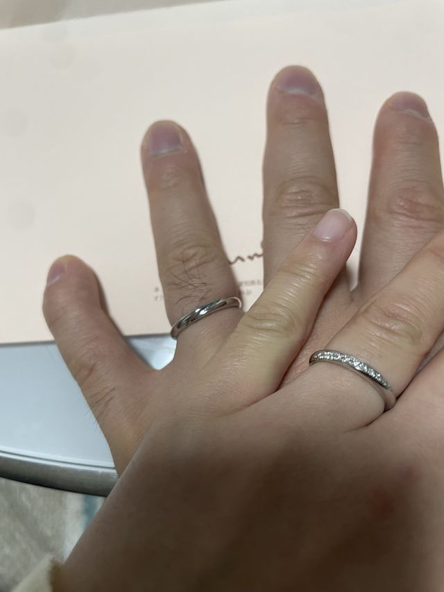 オーダーが出来たり、サイズが変わったとしても無料でお直しサイズが出来たり等、私たちにとって嬉しいサービスだった。又、いくつか回ったが、私たちにとってケイウノさんが一番お互いが納得した指輪だったので、決めた。