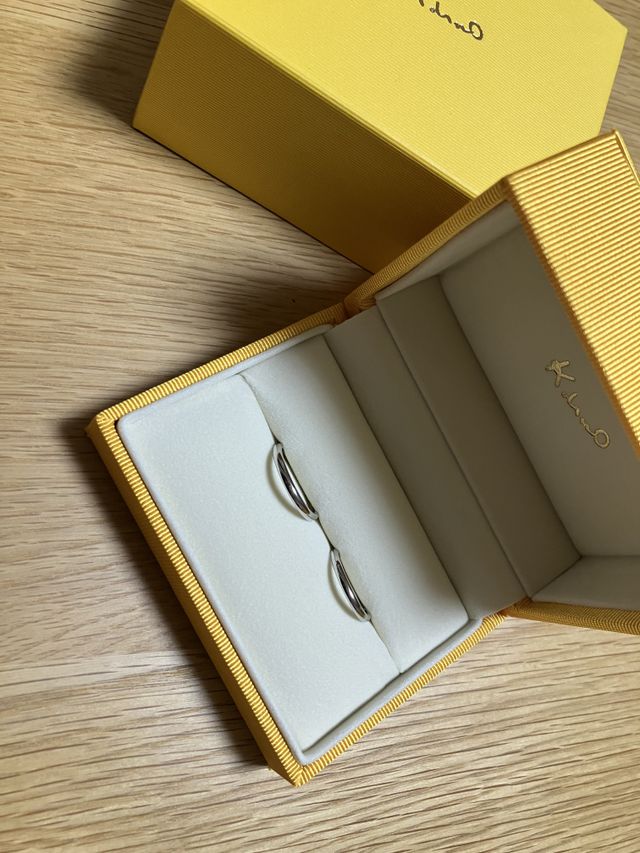 シンプルなリングにしました。最初ハピネスクラウンというモデルと迷っていましたが、長くつけることを考え、こちらの太めの商品に変えました。ケイウノの特徴である付け心地のよいカットを味わえます。男性も気兼ねなく使えるとおもいます。
