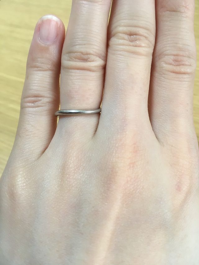 私は手が小さく、5号でもちょっと大きいくらいの細い指なので、あまりゴチャゴチャと指にさせたくないという思いがあり、結婚指輪については細身のシンプルなデザインでずっと探していました。