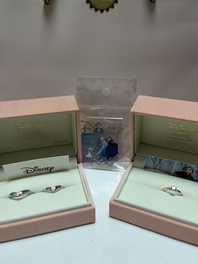 アナと雪の女王をイメージしてフルオーダーした指輪になります。特にセンターのアレンデールの紋章がとても可愛いです。内側には奥さんと自分の名前をモチーフにした刻印を考えてもらって、そこをとても可愛いポイントです。