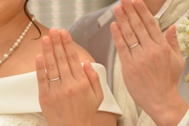シンプルで普段の生活になじむような指輪を探していました。角のない丸いフォルムで指にフィットするデザインで、毎日のデスクワークや家事で指輪をしない私も夫も仕事中に気にならない形が気に入ったのでこちらにしました。