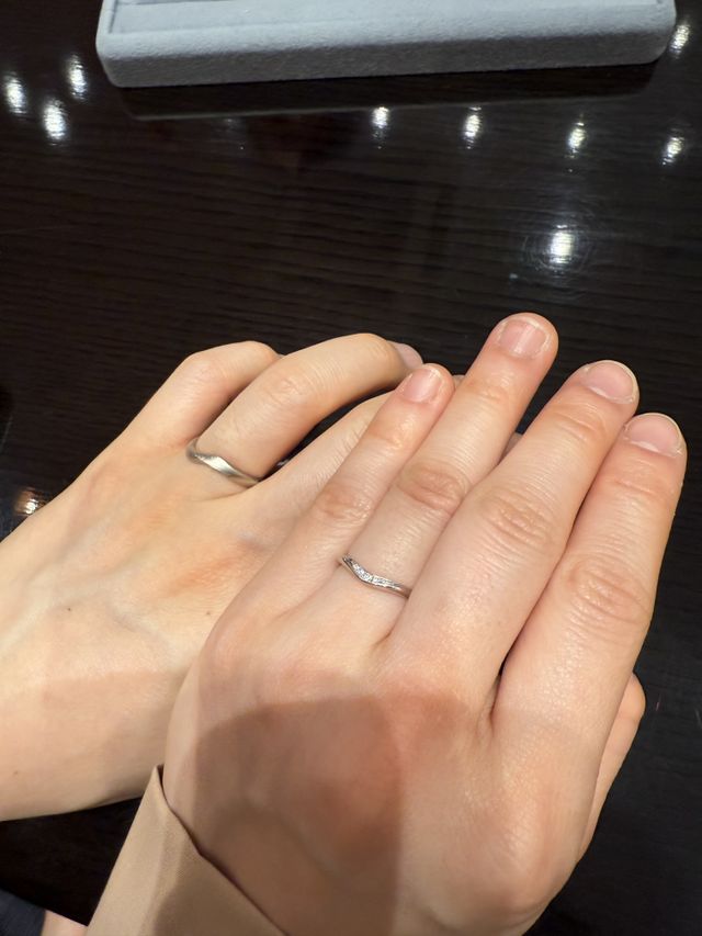 アフターサービスがとても充実していて、その場で刻印のデザインをしてくれるのもとても素敵だなと思いました。私と彼の要望を汲み取ってデザインしてくれたイニシャルと日付を指輪に刻印しています。いろいろな指輪を違う店舗でも試してきましたが、付け心地はケイウノさんが特によかったです。