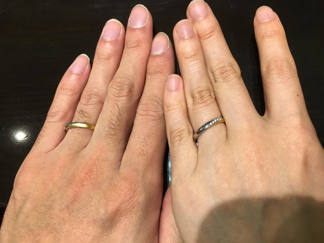 色の組み合わせが非常に綺麗だったため、試着させていただきました。フィット感も非常に手に馴染むもので、着け心地がとても良かったです。またダイヤモンドが入ってるにもかかわらず、自分たちの予算の範囲かつ、非常にお手頃な価格でした。