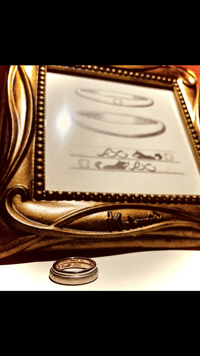 自分たちだけのものが欲しいと思っていて、お好みでオーダーできたのが決め手です。その場で、新宿店のデザイナーに刻印をデザインしていただきました。そのデザインが素敵すぎたのが決め手です。双子のダイヤモンドにも惹かれました。