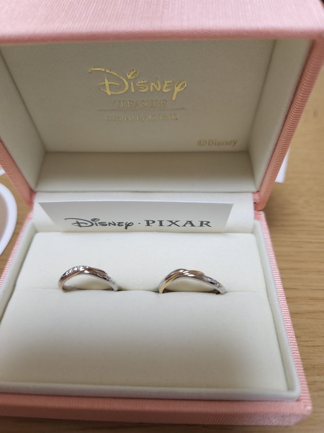 元々、婚約指輪をケイウノで購入していて、重ね付けしてきれいに見える形のものを検討していました。重ね付けして、きれいに見える形の結婚指輪を提案して頂き、決め手になりました。また、裏側にディズニーの刻印ができたことも、決め手になりました。