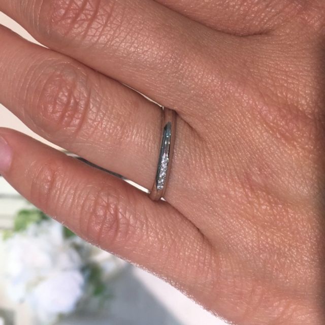 シンプルで幅は細身、派手さはあまり必要ではないという条件で色々と探していて見つけました。ダイヤモンドの数は3つほどであり、ラインに引っかかりもないので毎日着けていても問題が無さそうだと判断しました。ただシンプルなだけではなく、表面には装飾の凹凸があるのが気に入っています。