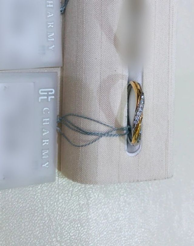 もともとリングの素材をプラチナとピンクゴールドで悩んでいたので、その両方が混ざったこのリングは一目で気に入りました。あまり見かけないデザインで個性的だと思いますし、柔らかな曲線が上品な印象でつけ心地も良いですね。