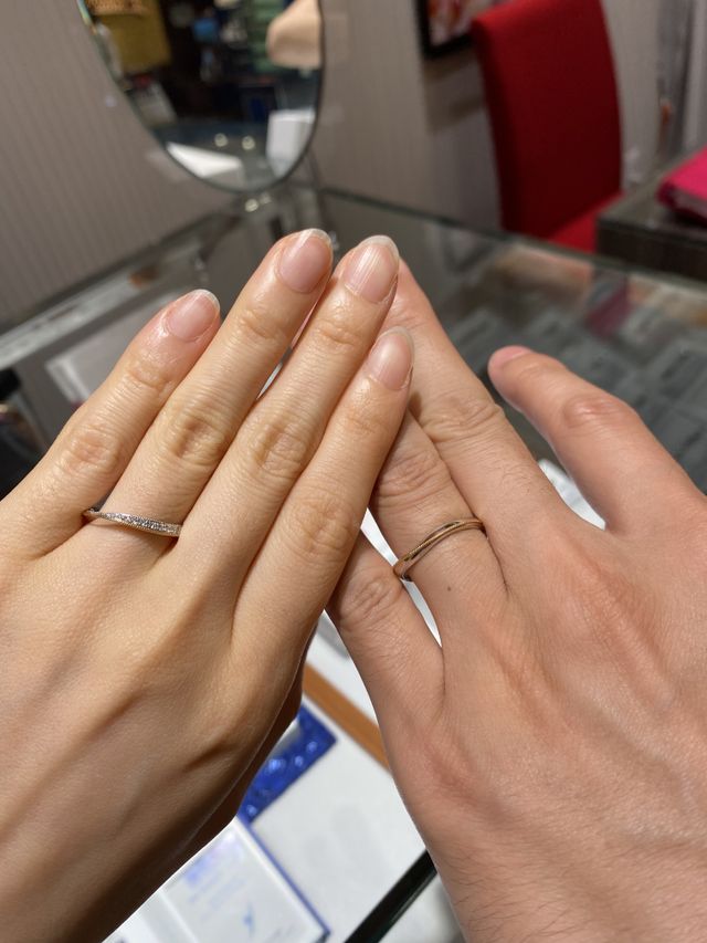使用していく中で、歪んだりすることのないように、美しさがありながらも強さのある指輪だと紹介をうけました。ヨーロッパで作られているシリーズもあったと思います。種類もいくつかあり、選択肢の幅は広かったです。