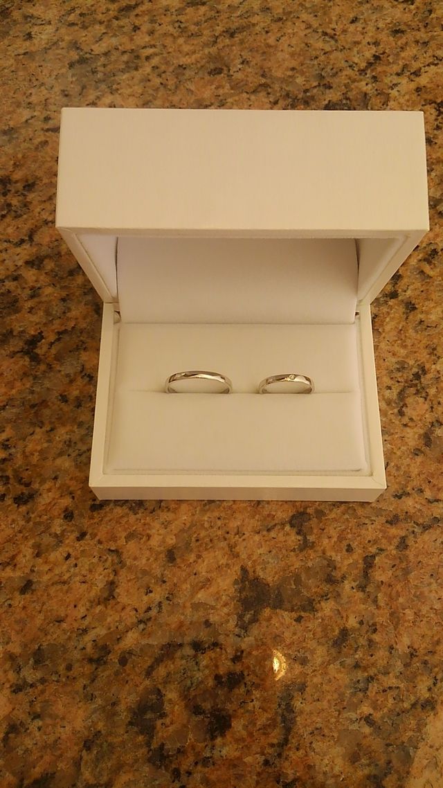 最初ゼクシイで見た時に、「絶対これ!」と直感しました。とにかくシンプルなデザインです。長年使うものなので、飽きがこなさそうなものを選びました。夫にとっては初めての指輪でしたが、特に抵抗もなく付けてくれています。