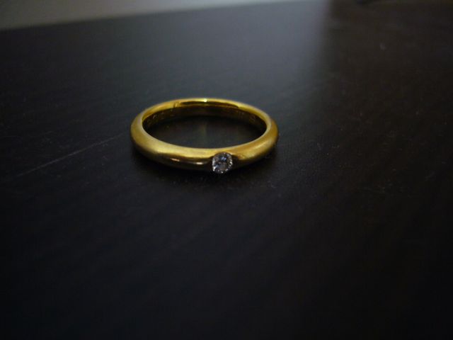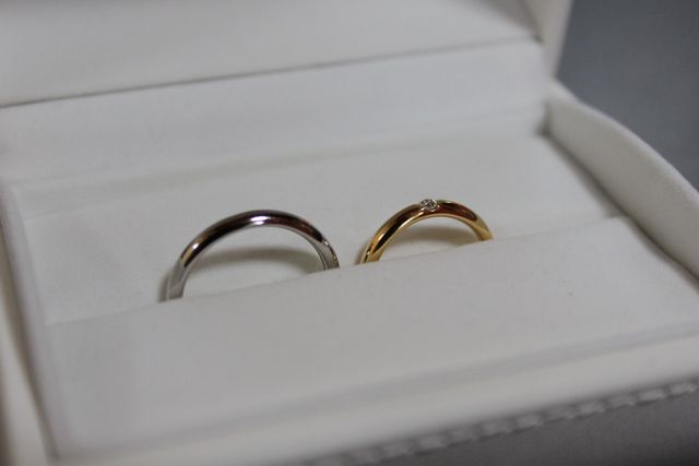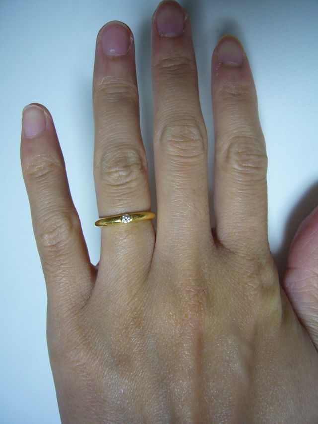 イエローゴールドにダイヤモンドが付いているシンプルな結婚指輪を探していたところ、イメージがぴったりなこの指輪に出会いました。ダイヤモンドが付いていますが、中に埋め込んであるので、家事などをしても引っかかることはありません。シンプルな中にも上品さがあって、とても気に入っています。