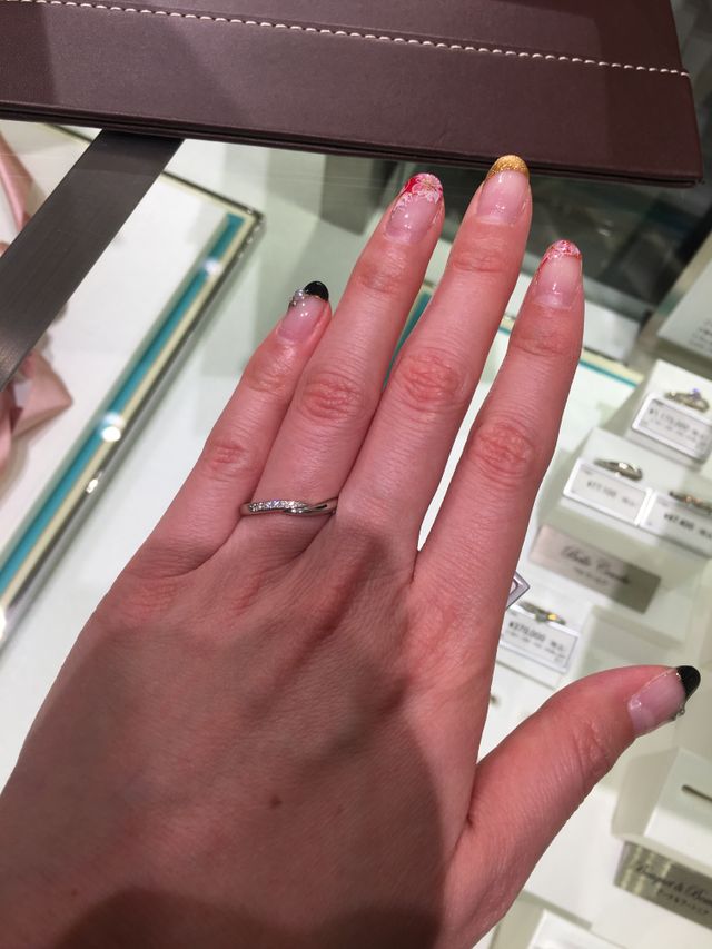 待ち時間もなくスムーズにご案内してもらえた。デザインも限られた中から選ぶのでイメージがはっきりしていなかった私たちにはそこが逆によかったです。ありすぎると迷ってしまうので…押しのつよい接客ではなく親身になってくれているのが伝わりとてもよかったです。