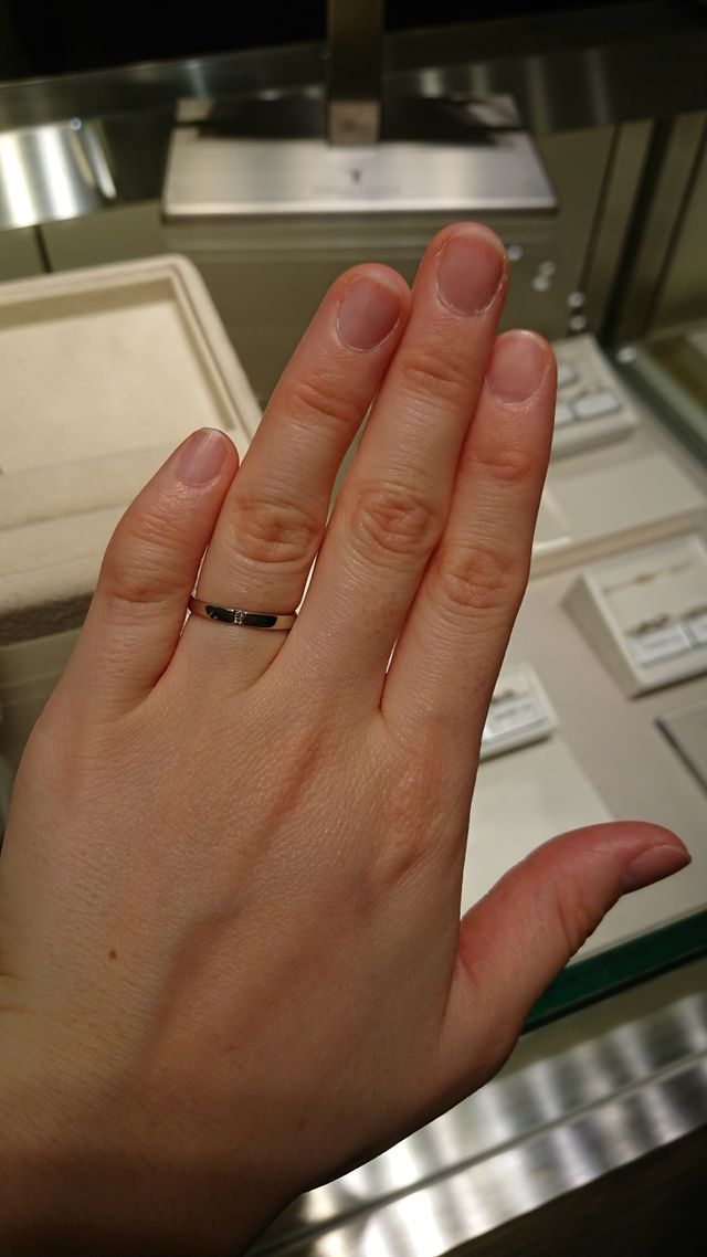 HPで始めから一番気になっていた指輪でした。甲丸すぎず、縦に2石ダイヤがついているのがとても上品で気に入りました。