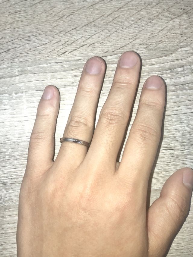 典型的な指輪の形だと好きじゃないが、あまり奇抜すぎるのも嫌なので、ウェーヴが入ってるくらいのデザインがちょうどよかったです。また、こちらの要望通りにマット加工してくれるところも決め手の一つでした。素材はプラチナで、つけ心地も全然悪くないし、価格もそれほど高くないため購入しました。