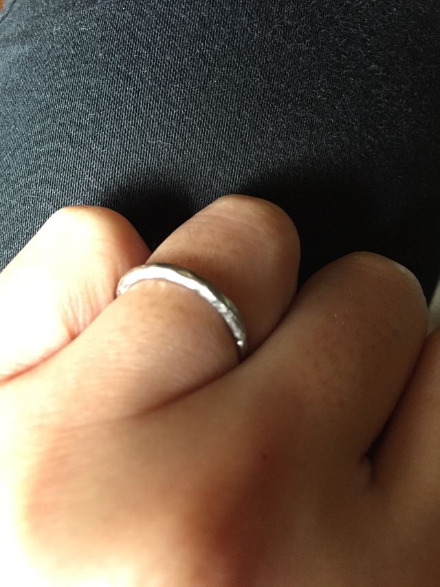 はじめは俄(にわか)の指輪のデザインが好きで探していました。お店の方に姉妹店とお聞きし色々見せていただいて今のものにしました。シンプルでいろいろなデザインの物がありました。普通の指輪より幅が細めであまりつけている感じがしません。家事をするので今のものが良かったと思います。