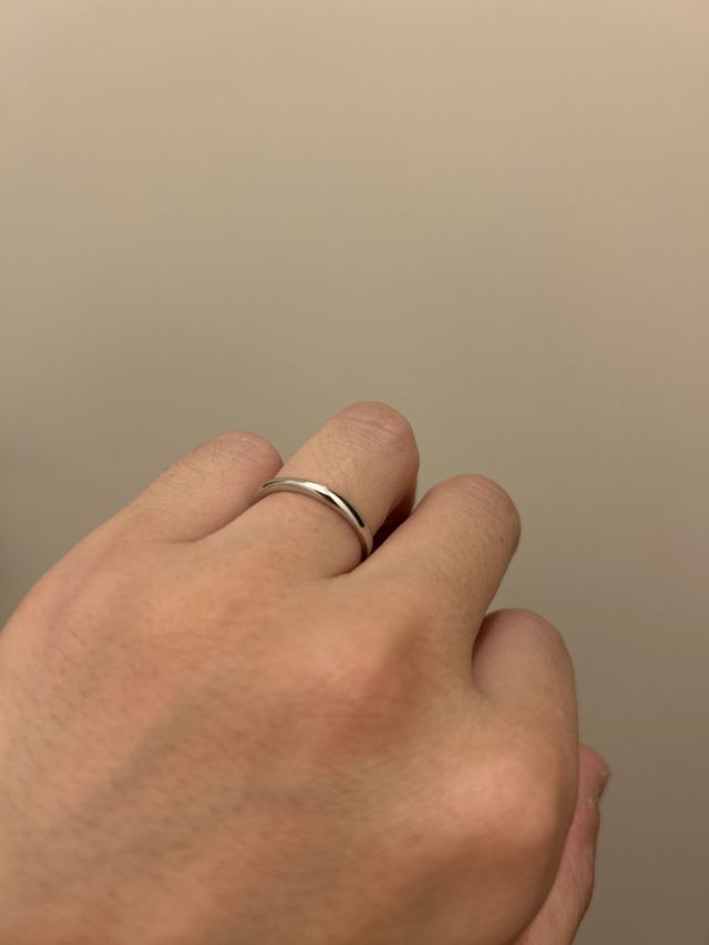 シンプルなのが良いという気持ちで選んだ。色々な指輪を見ると、派手なもの、おとなしめのもの、変形系のもの、たくさんあります。とはいえ最終的には『シンプルなものが一番落ち着くよね』ということでこちらに決めました。