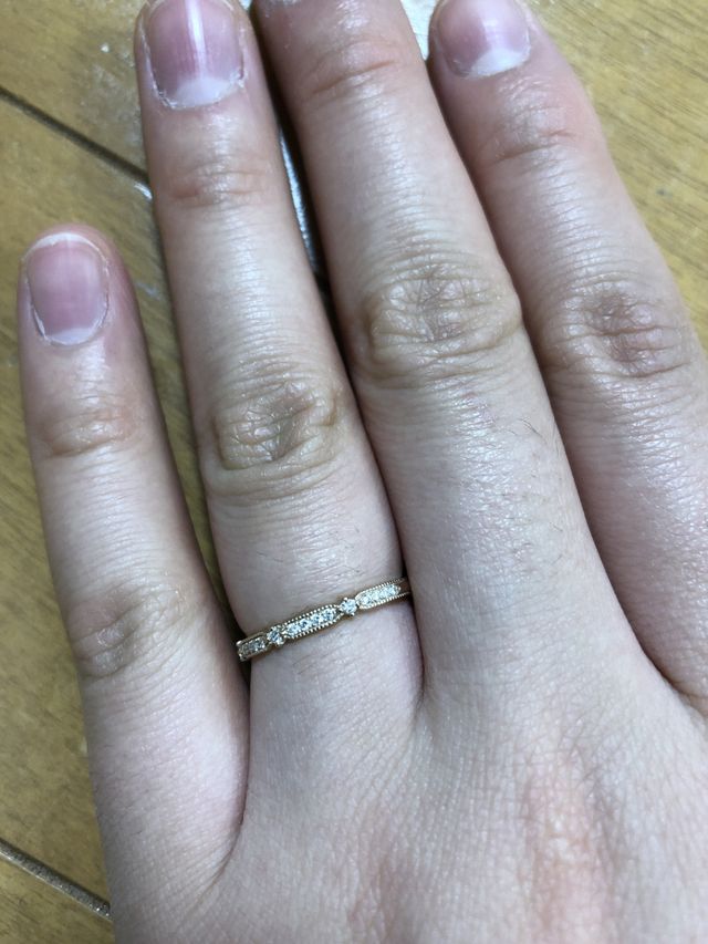 もともとダイヤモンドで囲まれたタイプの指輪と決めてましたが、外資系ブランドの太めのデザインにするのか…日系ブランドの華奢なデザインにするのかで凄く悩みましたが、私はやっぱり華奢なデザインがしっくりきました。