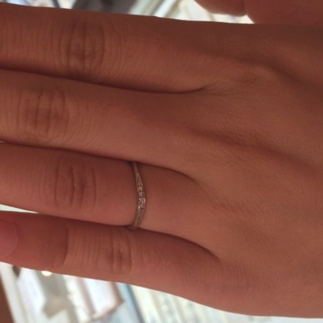 シンプルで華奢なデザインですが、造りとしてしっかりとしていること、付け心地が良いことなどが決め手となりました。ひねりの入ったラインや輝くメレダイヤもキレイなリングだと思いますし、価格が予算内だったのも良かったです。