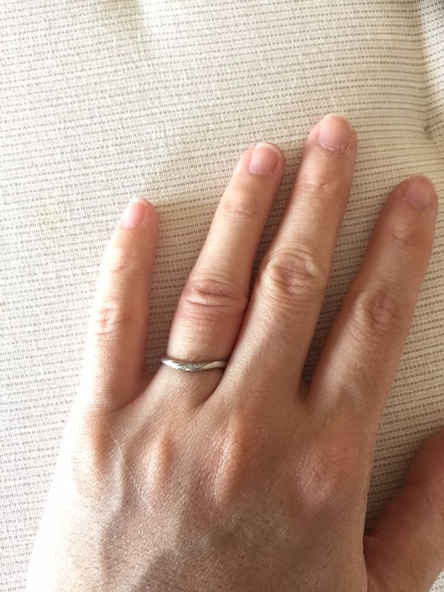 もともとお店にあるデザインは、あまり気に入らなくて、どこにでもあるようなデザインでした。マリッジリングは、デザインして貰いました。ペア購入を考えていて、デザイナーさんが提案しえくれたのが、2つの指輪を重ね合わせると、ハート型になるデザインで、ひとめぼれしました。