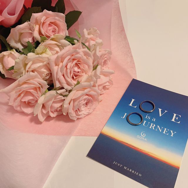 ナチュラルなガーデン調のお店でリラックス感がありました。完成した指輪で、お花と一緒に写真が撮れるのも素敵です。