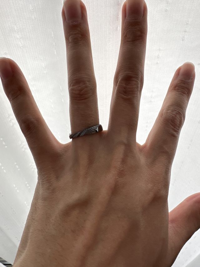 金属アレルギーに対応していて、購入した時の場所や思い出が甦りやすいデザインになっている。タルタンを使用している為、派手過ぎることもなく男性でも着けやすいから非常に気に入っている。2つの指輪を重ねることで生まれるデザインが個性的だった。