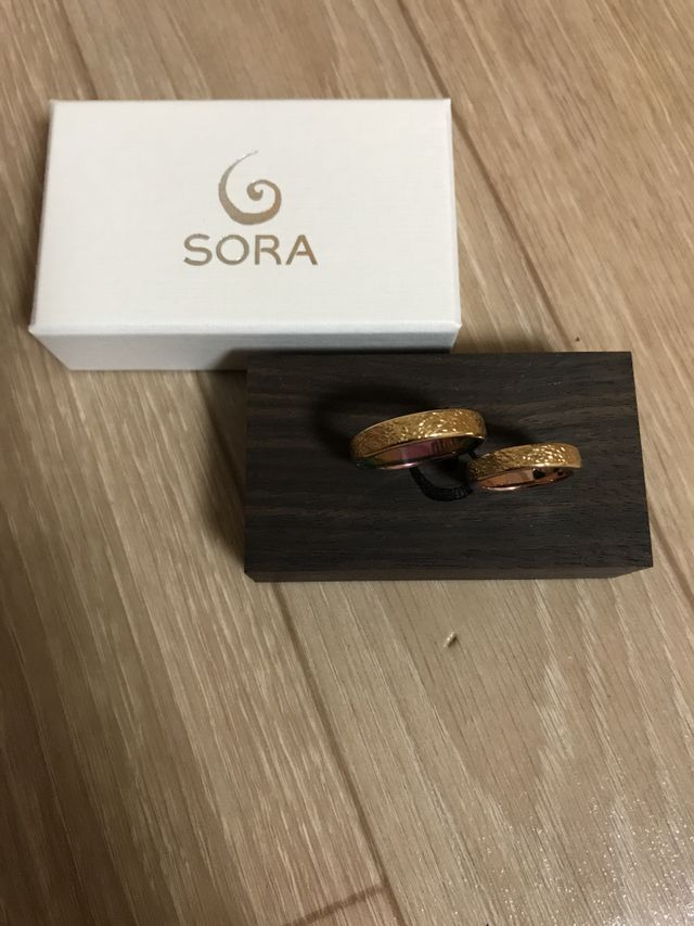 色やデザインはもちろん、材質まで細かく希望することができます。サイズは見本を自宅に送付していただき、自分に合うサイズを確認することができます。彼は金属アレルギーのため、内側の加工をわたしとは別のものにしていただきました。