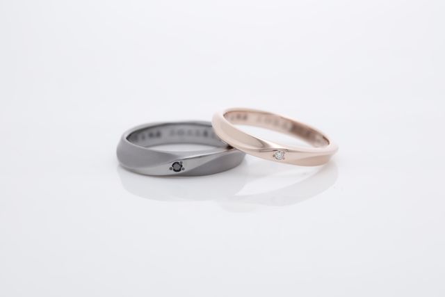 オーダーメイドで指輪をつくることが出来ること、人と被らないデザイン性、カラーを選ぶならここが1番。指輪選びの際にも、自分たちの思い出の場所、時を思い出しながら、指輪の形と色に表現できることが何より楽しかった。
