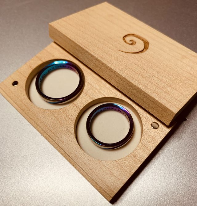 ネットでSORAを見てピジュピコ大阪店で実物を見て決めました。オーロラを選択しましたが、色が特徴的で着用してみると角度や付けている間に回転して素敵な色をその都度感じられます。シルバーやゴールドのみのリングより色で楽しめます。満足出来る逸品です。