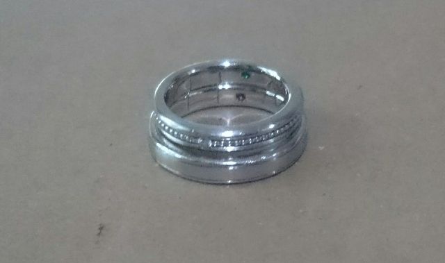 手作りのお店でもいろいろ作り方があり、こちらは原型である型を作り、後から職人さんが良い感じに仕上げてくれるので安心です。デザインの自由度も魅力的で、自分達の場合、指輪の裏側に日付(こちらは刻印)それぞれ誕生石と、重ねるとわかるイニシャルを掘りました。特別感があって一生物の結婚指輪としてとても良いと思います。