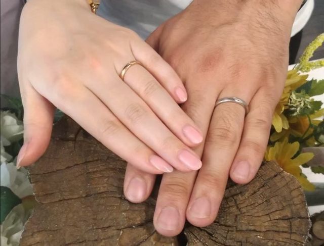 この先ずっと飽きが来ないようにシンプルなデザインにしました。カラーは私がゴールド、夫がシルバーという風にあえて分けました。デザインも自分たちの思った通りに仕上げることができました。世界に一つだけの宝物です。