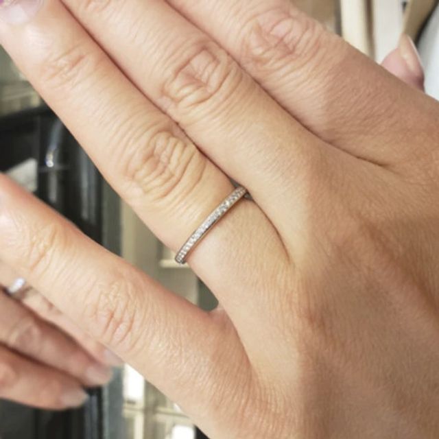 シンプルなデザインですがエレガントな雰囲気があり、付け心地も良いのが決め手になりました。幅が細めのリングを探しておりこちらのリングがイメージにピッタリと感じたことや、メレダイヤの輝きがとても綺麗だったのも良かったです。