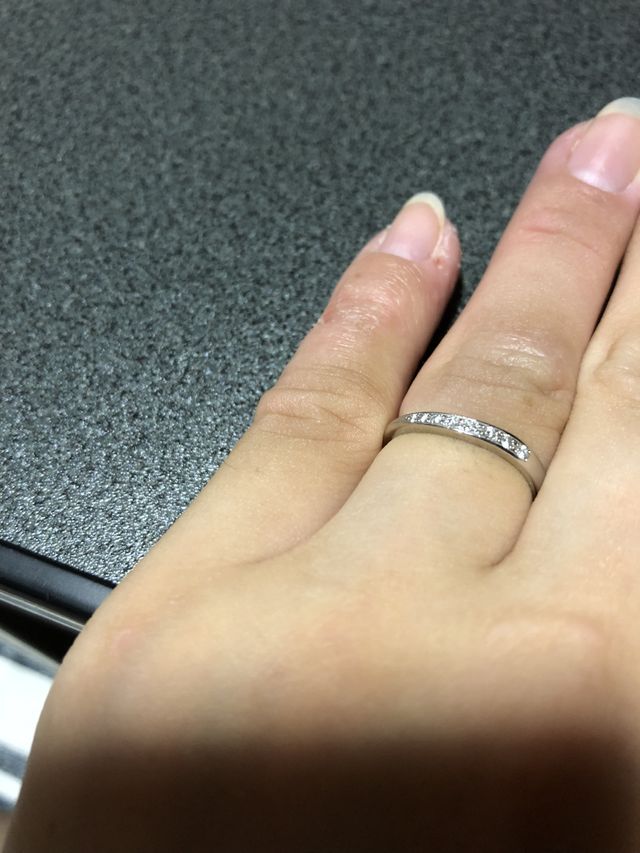 とにかく予算内でアフターケアが良かったです。あまり高く予算は考えていなかったので満足のいくものが見つかるか不安でしたが、お目当てのものが見つかったって満足しています。また、ダイアモンドのラインが指を細く見せてくれる点についても気に入ったのでこちらに決めました。