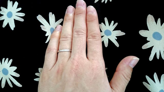 また、メンズ用のデザインがシンプルで控え目なので、夫婦揃ってメンズ用の指輪で作りました。