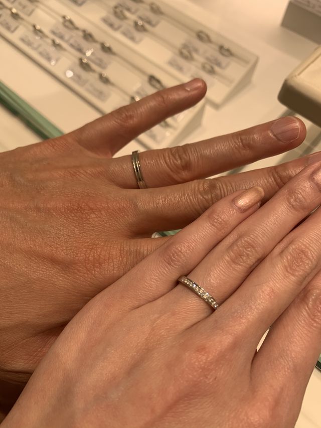 真ん中のダイヤモンドが大きく、埋め込まれていないので、よりダイヤモンドがキラキラして見えました。