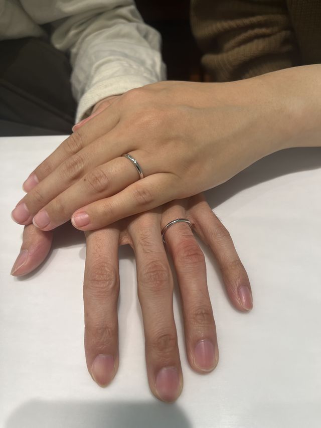 シンプルで王道なデザインの指輪です。付け心地も良く、毎日つけ続ける結婚指輪にはぴったりで、素材もプラチナを選択したので、シルバーの輝きがとても素敵です。末長く2人でつけ続けることができるいい指輪だと思います。