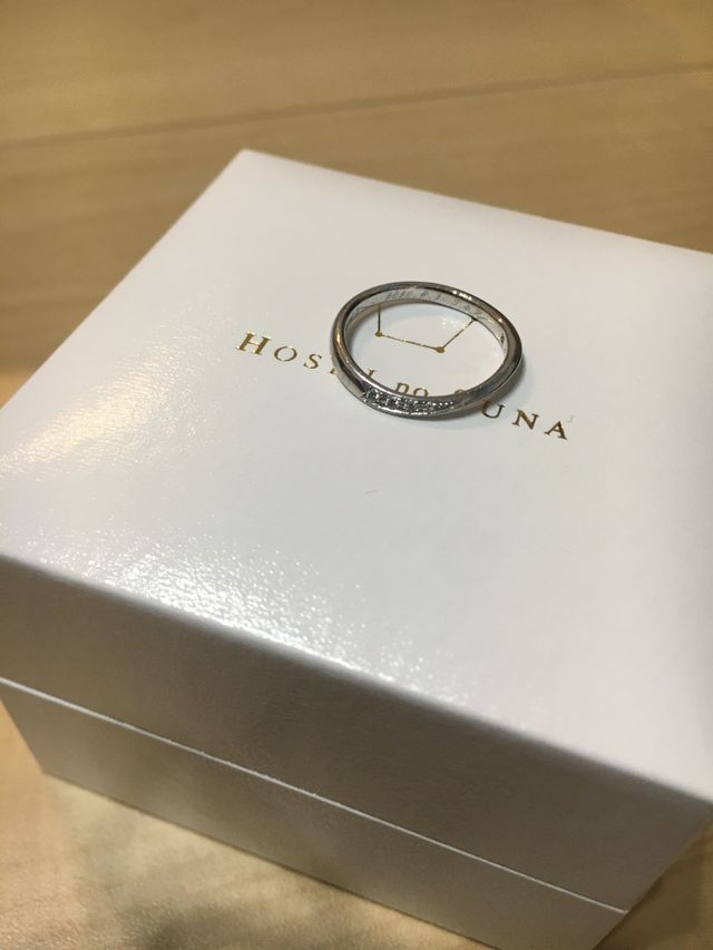 シンプルな中にも上品さがあります。重ね付けもしやすいデザインです。男性で指輪に慣れていない方も違和感なくつけられる、装用感がよいエッジデザインです。ダイヤモンドの質も高いと思います。ホシノスナというブランド名もかわいいです。