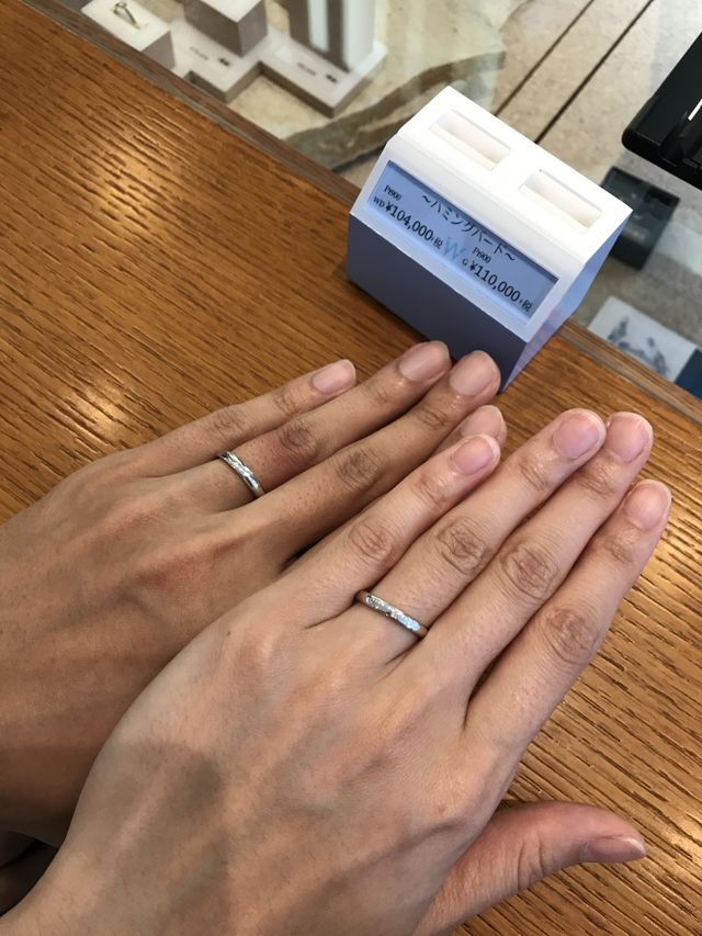 シンプルだけど、上等なダイヤを使っていたりとこだわりが感じられました。実際にダイヤを顕微鏡で覗くと、ハートと天使の矢の形がはっきり見ることができました。ツインズキューピッドという、一つのダイヤから二つのダイヤを取り出し、それぞれの指輪に入れるというのも繋がりを感じ素敵でした。