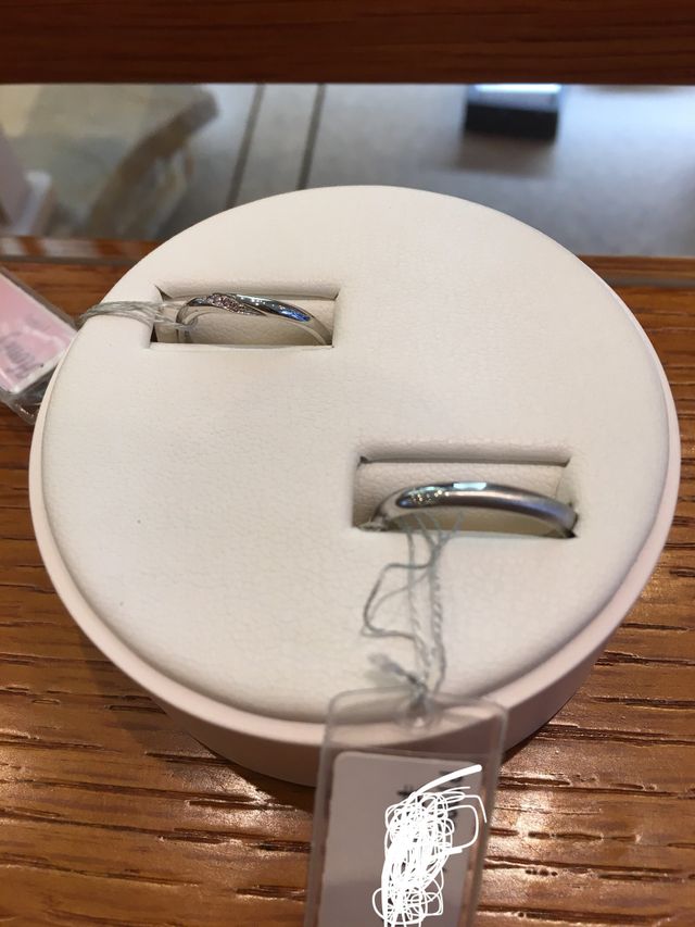 メレダイヤ無しで探していましたが、ピンクダイヤに一目惚れをし試着しました。リング幅も細めなので、指を綺麗に見せてくれます。