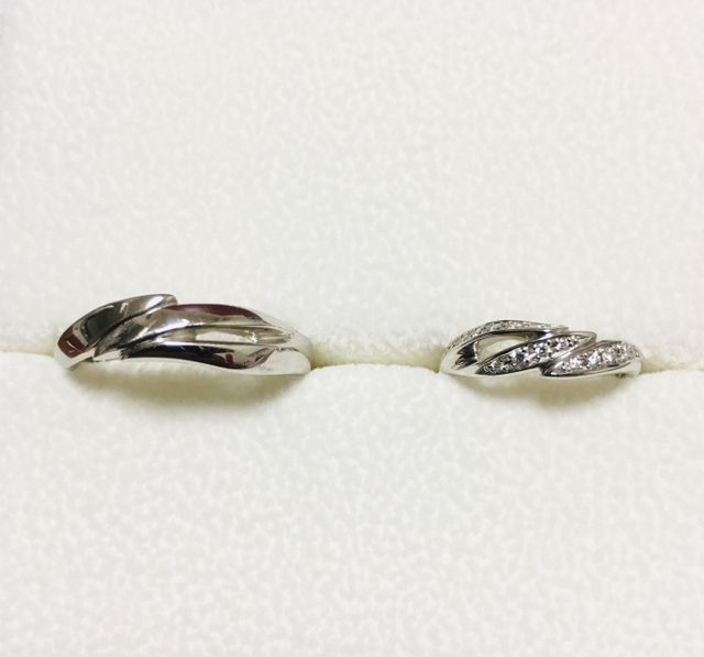 最初は、他のアクセサリーの修理で伺い、ついでに下見でもしようと結婚指輪を見ることになりましたが、担当してくださった店員さんが私たちのフィーリングに合わせて、「この指輪がお二人にピッタリですよ」と選んで下さり、一目惚れ!!その後も他の商品を見ましたが、選んでいただいた商品以上の物は見つからず、本来買う予定ではありませんでしたが、その場で即決し購入しました。