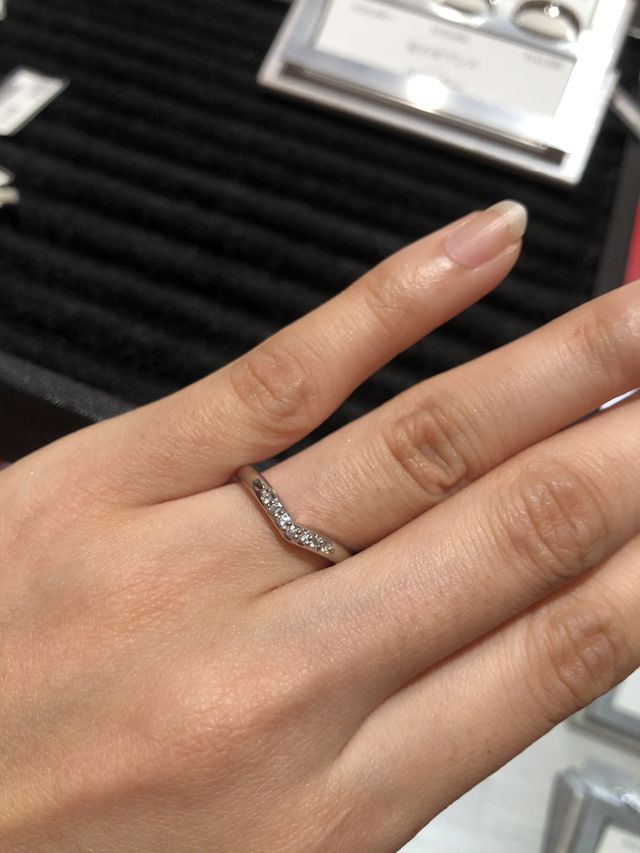 V字は緩やかで、婚約指輪とも馴染みそうでした。