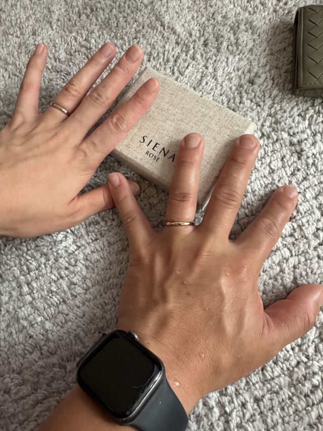 最初はゴールドが欲しかったけどシエナロゼのロゼチナを拝見させていただいてに説明受けていたらだんだん魅力を感じた 付けていても気にならないところはいいです そして強度もゴールドとプラチナを混ざっているから強度にも力入れてるところがきめどころ